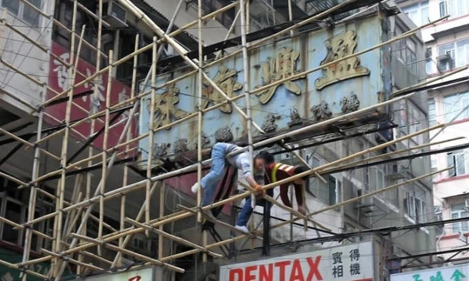 Kỹ thuật xây dựng bằng giàn giáo tre có lịch sử hàng trăm năm vẫn được các thợ xây Hong Kong sử dụng khi thi